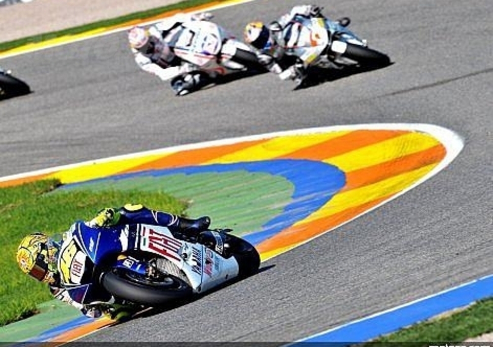 I primi 4 giri vivono lo strepitoso ritorno di Rossi che cerca in tutti i modi di non farsi scappare il campione del mondo della Ducati.