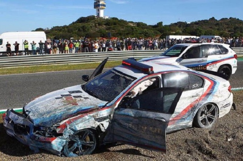 Alla fine del warm up della MotoGP, Franco Uncini, nel tradizionale giro di pista con la Safety Car per controllare che tutto fosse a posto, ha perso il controllo della BMW M5 alla curva 5, la Sito Pons, una destra velocissima, finendo contro le barriere. Uncini illeso, la BMW un po’ meno.