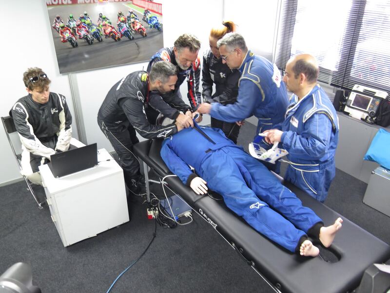 Dorna, organizzatrice del motomondiale, lavora incessantemente per migliorare la sicurezza, non solo dei circuiti. A breve, in ogni paddock dei circuiti del motomondiale ci sarà un vero e proprio ospedale, che di fatto sostituirà la “Clinica Mobile”, sempre coordinato, però, dal dottore Michele Zasa. Il maggiore spazio consentirà di avere sempre più macchinari e sarà disponibile anche un “manichino”, dal costo di 20.000 euro, con il quale i medici di potranno fare pratica per qualsiasi tipo di primo intervento: perché il manichino, opportunamente programmato, riproduce infatti esattamente qualsiasi reazione del corpo umano e qualsiasi tipo di lesione o trauma. Niente da dire, sotto questo aspetto il motomondiale è assolutamente all’avanguardia. (foto di Perez de Rozas)