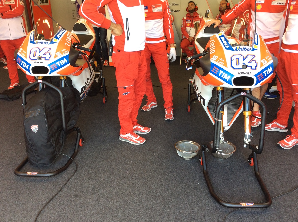 Entrambi i piloti Ducati montano sulle due moto la forcella 2017. Non sempre ė accaduto quest'anno
