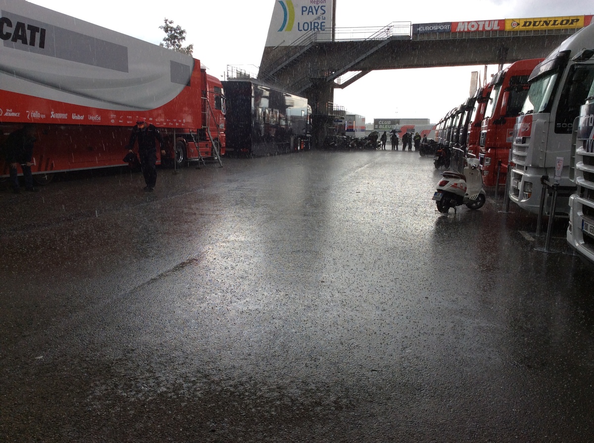 Buon giorno da Le Mans: acqua, freddo, acqua, a tratti anche fortissima…