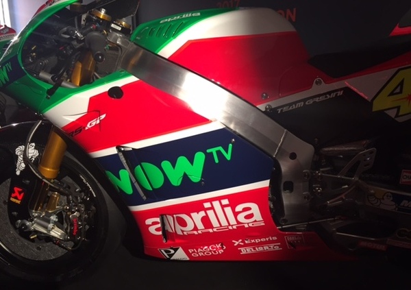 La nuova livrea tricolore della RS-GP 2017, disegnata da Aldo Drudi, è un omaggio all'orgoglio tutto italiano come ha fieramente sottolineato Roberto Colaninno (presidente e amministratore del Gruppo Piaggio).