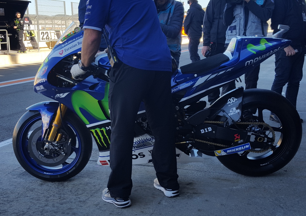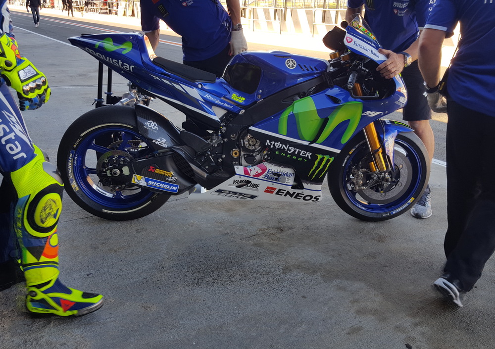 Da tantissime stagioni, la Yamaha M1 è la moto da GP che mette meno in crisi i piloti che la conducono in gara. L’equilibrio raggiunto con la configurazione di inizio 2016 sembrava un punto d’arrivo difficile da raggiungere per gli avversari, mentre poi si è visto che in MotoGP basta poco per perdere competitività e così la rottura dei due motori al Mugello, e la capacità del team HRC di trovare un buon setting per Márquez e Pedrosa le hanno fatto perdere lo scettro della moto regina. Il motore della M1 non è mai stato il riferimento prestazionale della categoria; a fine stagione, però, l’accelerazione è parsa veramente insufficiente per permettere ai piloti di condurre la gara senza essere costretti a rischiare troppo in fase di percorrenza di curva. Riguardo a questo aspetto a Valencia si è visto poco, e lo stesso Rossi ha ammesso di essere rimasto deluso dalla prima uscita con il nuovo motore. C’è da scommettere che in Yamaha avranno dedicato molte energie a correggere questa situazione, mentre in Spagna la nuova moto portata al test ha mostrato una ciclistica parecchio diversa da quella 2016. Due indizi notati a Valencia possono portarci a capire come stiano lavorando i tecnici giapponesi: la grossa bocca di uscita dello scarico sul lato destro risultava più incassata nella nicchia del forcellone ed era presente una piccola gobba nella parte superiore dell’elemento in carbonio che copre l’airbox. Questo porta ad ipotizzare che in Yamaha abbiamo pensato di modificare la posizione del motore all’interno del telaio: una piccola rotazione relativa del blocco motore verso il posteriore può produrre una modifica della caratteristica inerziale del veicolo positiva in termini di agilità.
