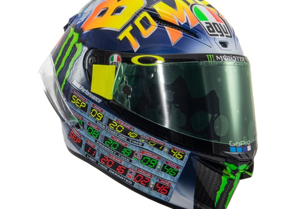 Grafica speciale, come ormai tradizione, per il Gran Premio di casa sfoggiata da Valentino Rossi nelle FP3 (leggi l'articolo). Per il Gran Premio di San Marino e della Riviera di Rimini, sul Marco Simoncelli World Circuit di Misano Adriatico, l'AGV Pista GP-R di Rossi torna alle citazioni cinematografiche con un "Back to Misano" che gioca sulla sua assenza dell'anno scorso - il 2017 - quando fu costretto a saltare il Gran Premio di casa a seguito di un infortunio in allenamento con la moto da cross.