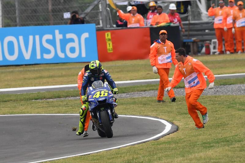 Era lì a giocarsela con il compagno di squadra. Poi è arrivato Marquez. Abbattuto.