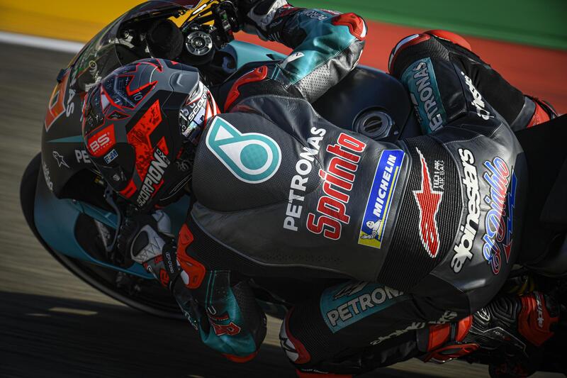 Fabio Quartararo (2°): "A Misano mi ero dato 8 per il giro in qualifica, qui mi do 9. Obiettivo era fare la prima fila, l’ultimo giro è stato perfetto: non sarà una gara facile. Siamo purtroppo ancora in difficoltà in frenata: va meglio di ieri, ma non mi sento forte come a Misano. L’importante è partite davanti, ho un buon passo: sono messo bene, ma non così bene.