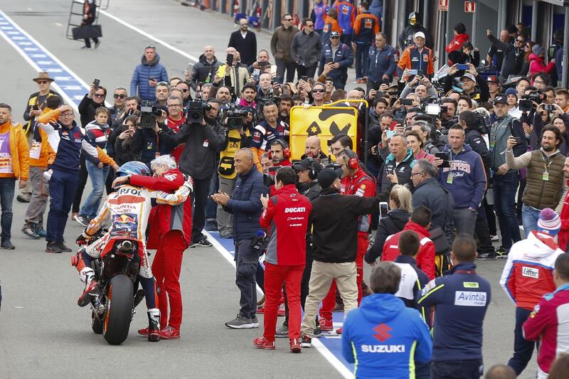 Il risultato, 13esimo, è stato negativo, ma il giro d’onore emozionante: il tributo degli appassionati, le pacche su tuta e casco di chiunque ne abbia avuto la possibilità, il riconoscimento dei rivali, l’abbraccio con l’ingegnere Gigi Dall’Igna, che Lorenzo si è fermato a 'salutare' poco prima di riportare la moto al box.