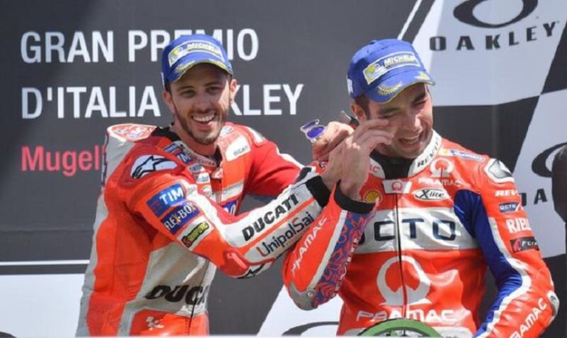Claudio Domenicali, Amministratore Delegato di Ducati Motor Holding, ha aggiunto: “Vorrei innanzitutto ringraziare Jorge Lorenzo per l'impegno che ha profuso come pilota Ducati, e in particolare per l'eccezionale vittoria di domenica scorsa al Mugello, che passerà alla storia come uno dei trionfi più leggendari della nostra azienda. Jorge è un grande campione, anche se da un pilota del suo valore ci saremmo aspettati la capacità di fornire in tempi più rapidi indicazioni chiare e precise ai nostri tecnici per migliorare il suo feeling con la nostra moto: quindi mi auguro che possa non solo ottenere altre vittorie nelle restanti gare della stagione, ma addirittura lottare per il titolo mondiale insieme al suo compagno di squadra Andrea Dovizioso, adesso che finalmente riesce a sfruttare tutto il potenziale della nostra Desmosedici. Non dimentichiamoci che siamo solo a un terzo di stagione e il campionato è totalmente aperto. Desidero dare un caloroso benvenuto a Danilo, che non vediamo l'ora di vedere in sella alla Desmosedici GP del Ducati Team insieme ad Andrea, e che sicuramente continuerà la sua rapida ascesa verso il successo con i colori del team ufficiale. Onesto, grande lavoratore e velocissimo, Danilo interpreta al meglio lo spirito del Ducatista. Gli vogliamo davvero bene.”
