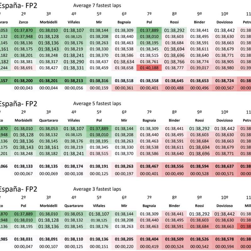Marquez, ovviamente, non prova nemmeno il “time attack”, che fanno invece tutti gli altri, con Maverick Vinales primo in 1’36”584 (con 40 °C sull’asfalto!) e Fabio Quartararo staccato di appena 0”059. Ancora una volta, insomma, i due piloti Yamaha sembrano i grandi favoriti sia per la pole sia per la gara (ma per questo c’è ancora tempo): in questo momento sono superiori a tutti nel singolo giro e sul passo. Valentino Rossi si difende con un discreto ottavo posto a 0”404: è sicuramente un Valentino più competitivo rispetto al precedente GP. I due futuri compagni di squadra rimangono più veloci, ma lui si è avvicinato. In difficoltà, invece, Franco Morbidelli, 12esimo a 0”596 e quindi costretto a passare dalla Q1.