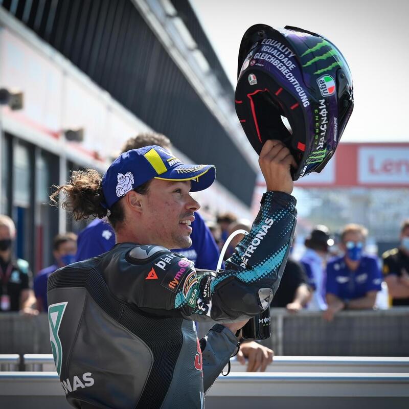 “Sapevo che l’inizio sarebbe stato difficile, e ho rischiato di cadere due volte, non sentivo il limite. Poi ho cominciato a girare forte, ho preso gli altri, ho visto l’opportunità del podio e l’ho sfruttata. Sapevo di essere forte nel settore del Tramonto, ero efficace in frenata: al penultimo giro ho passato Rins, quindi ho avuto la possibilità di passare Rossi.