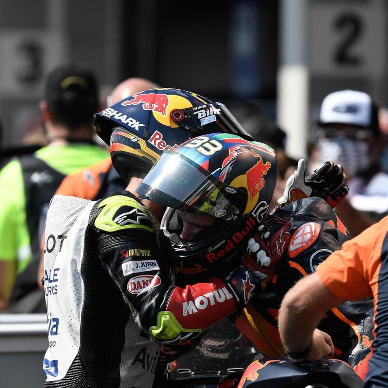 Era arrivato al mondiale dopo aver vinto il CEV e grandi prospettive, ma poi Dennis Foggia si era un po’ perso; nel 2019 avrebbe voluto cambiare qualcosa dentro al box, ma non gli è stato concesso e si è poi arrivati alla separazione con l’Academy. “Ho rischiato di smettere” ha confessato, ma il team Leopard, forse il migliore della categoria, ha creduto in lui. L’inizio è stato difficilissimo, ma Dennis ha tenuto duro e a Brno ha vinto il suo primo GP con una gara da applausi. “The Rocket is back”, il “missile è tornato” ha dichiarato alla fine, tra lacrime di gioia. Una gran bella vittoria.