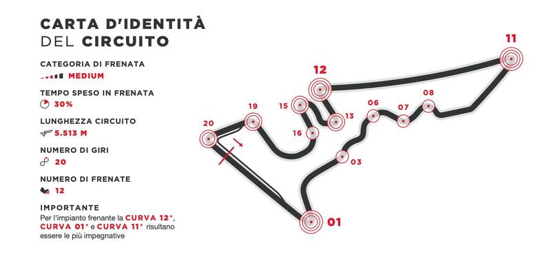 Delle 12 frenate del Circuit of the Americas 3 sono classificate come impegnative per i freni, 4 sono di media difficoltà mentre le restanti 5 hanno un’incidenza leggera sugli impianti frenanti. La più dura di tutte è quella alla curva 12: le moto arrivano a 339 km/h e frenano per 6,2 secondi per scendere fino a una velocità di 66 km/h. I 317 metri della frenata costituiscono il record del Mondiale e comportano un carico sulla leva di 5,7 kg e una decelerazione di 1,5 g mentre la pressione del fluido freno Brembo HTC 64T raggiunge i 12,2 bar.