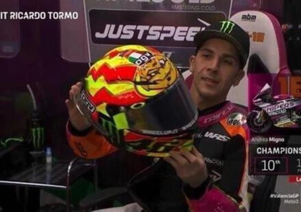 I piloti del vivaio di Tavullia (l'Academy) hanno deciso di omaggiare Valentino Rossi riportando in pista i caschi che il loro 'mentore' ha indossato durante la carriera.