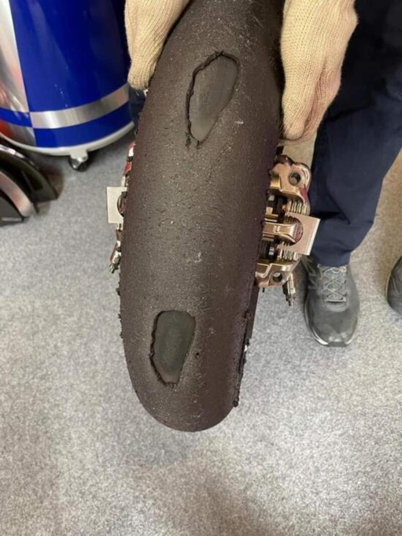 Ma c’è stato il problema anche all’anteriore: le fotografie della gomma di Miguel Oliveira, con veri crateri superficiali e il conseguente ritiro forzato, sono circolate dappertutto.