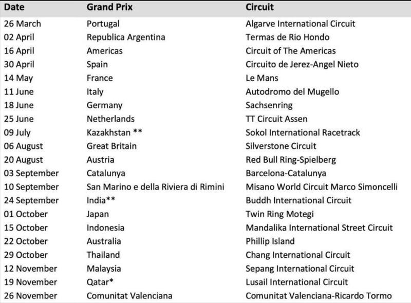 Dorna ha pubblicato un calendario provvisorio per il campionato MotoGP 2023.