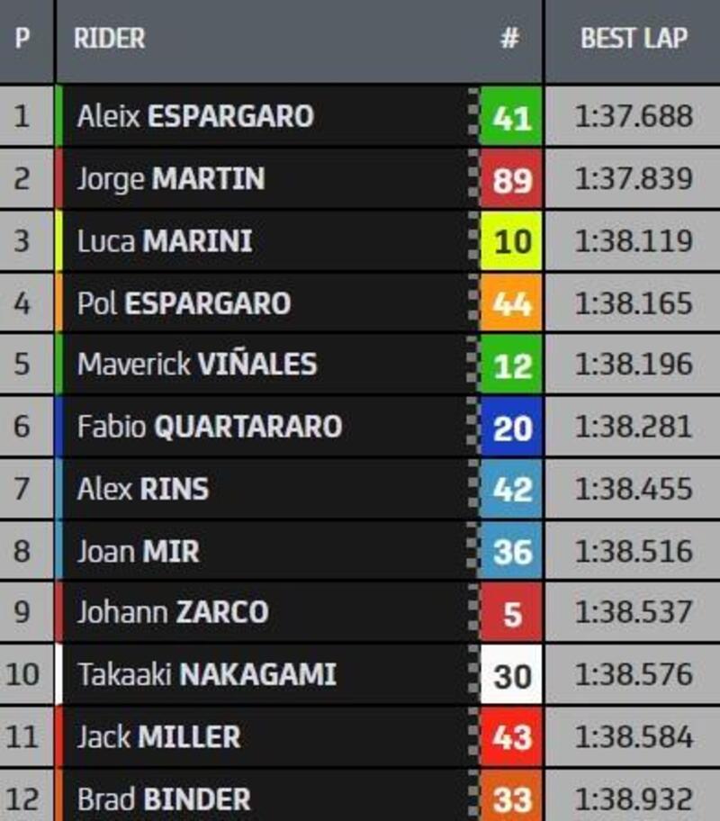 “Non mi aspettavo un giro così da parte di Aleix: siamo tornati alla moto dell’anno scorso e mi trovo molto meglio” sottolinea Martin, confermando che la GP22 ha qualche problema, tanto da consigliare ai piloti di fare un passo indietro.