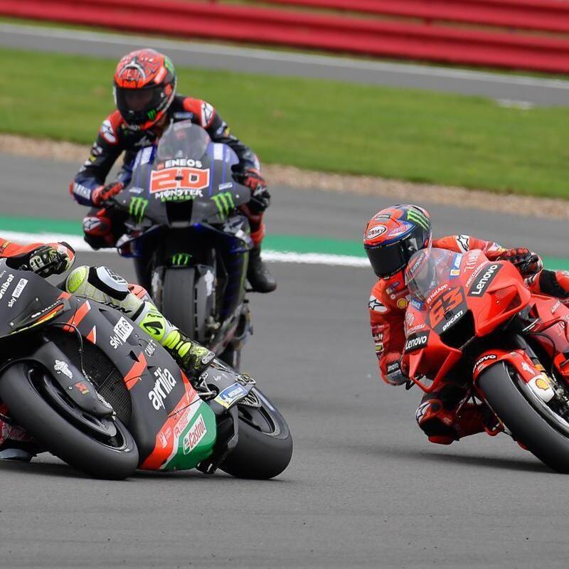 Silverstone - Fabio Quartararo va forte, è il più veloce, ma sul passo i piloti Aprilia sono messi piuttosto bene, in particolare Maverick Vinales, terzo, ma anche Aleix Espargaro, quinto, ha una buona costanza.