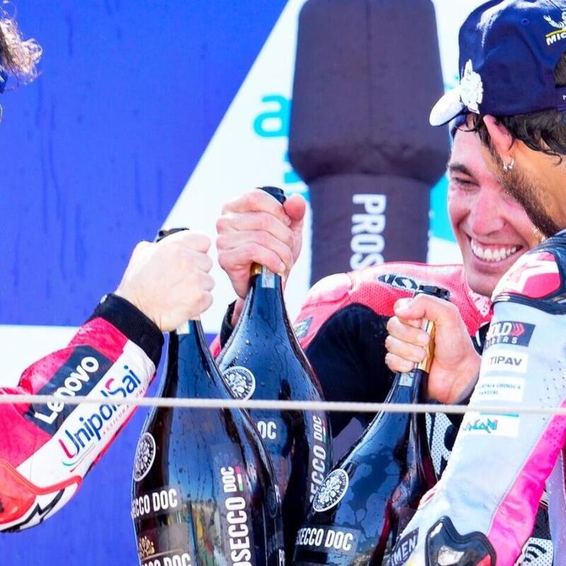 Anche questa volta, sembrava in difficoltà in prova, dopo due cadute, una delle quali devastante per la sua Aprilia. In gara non ha iniziato al meglio, ma quando c’è da sorpassare non si tira mai indietro e dà il meglio di sé. Torna perfettamente in lotta per il titolo, altro che 5% (capito zam?). È a un altro livello (rispetto al passato).