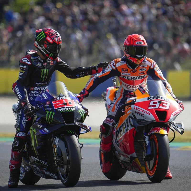 Le due Suzuki partono dalla terza fila, con Joan Mir settimo e Alex Rins ottavo: soprattutto Alex ha un buonissimo passo. Jorge Martín completa la terza fila, mentre le tre Honda sono in quarta fila, con Marc Marquez decimo, Pol Espargaro 11esimo e Takaaki Nakagami 12esimo: ci si aspettava qualcosina in più da Marc.