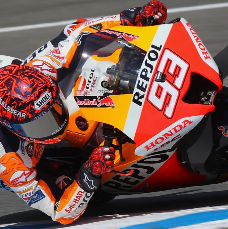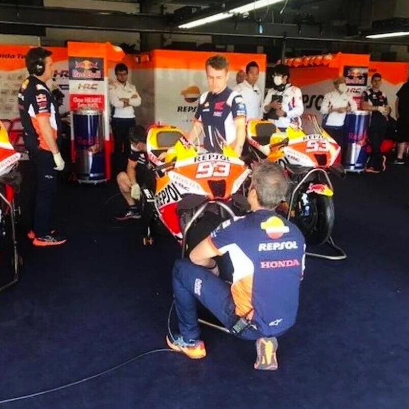 Dopo la battaglia in pista con Aleix Espargaro e Jack Miller ci sono stati i test del lunedì in cui il 93 ha provato varie soluzioni, con tre Honda a sua disposizione nel box.
