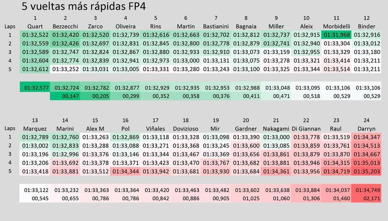 Ciò che è indiscutibile è che, come nei test di tre settimane fa, Quartararo è il più veloce e ha il passo gara migliore: è il chiaro favorito per domani. È vero che la gestione delle gomme sarà la chiave di questa gara, ma con i numeri che ha dimostrato sembra che nessuno sarà in grado di fermare l'attuale campione del mondo.