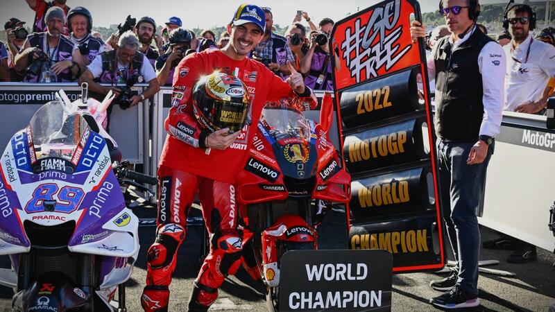 Cheste - Nella giornata forse più difficile dell’anno di questa stagione trionfale, la Ducati e Francesco Bagnaia portano a casa il risultato più grande, quello che fa entrare Pecco nel libro dei primati: è campione del mondo.