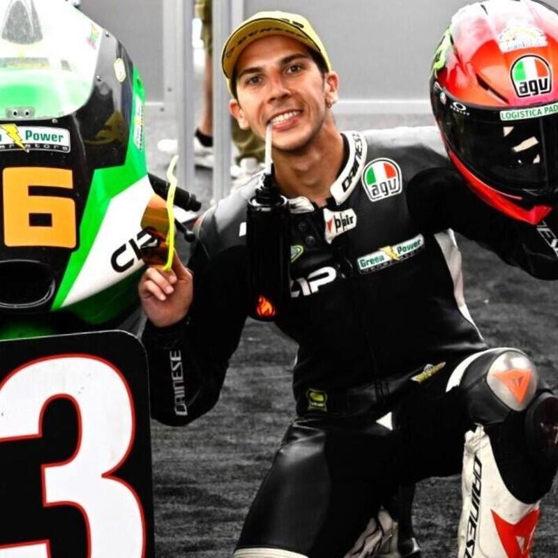 Bezzecchi entra con la sua Ducati rossa, in questo caso, e non gialla e nera. Ha caldo. Anche Morbidelli è pronto. Si vedono alcuni passaggi, girano insieme, primo Migno poi Bezzecchi, Rossi e Morbidelli.