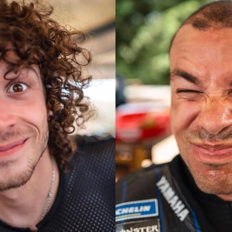 Uno ad uno entrano nei box dove ad attenderli ci sono la Ducati Panigale V4 per Bezzecchi e le Yamaha R1 per Rossi, Morbidelli, Migno e Vietti. Mancano Bagnaia e Luca Marini, freschissimo di matrimonio.