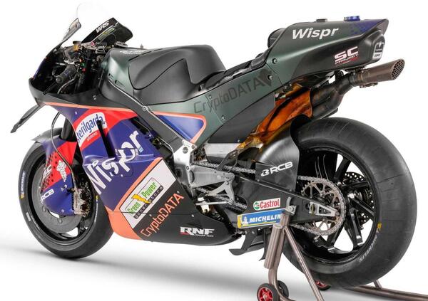 A gestirlo è il sodalizio formato da RNF Racing Ltd e CryptoDATA. Le moto hanno una livrea scura, come l’Aprilia ufficiale, ma hanno diverse tonalità come verde, blu, nero e oro.