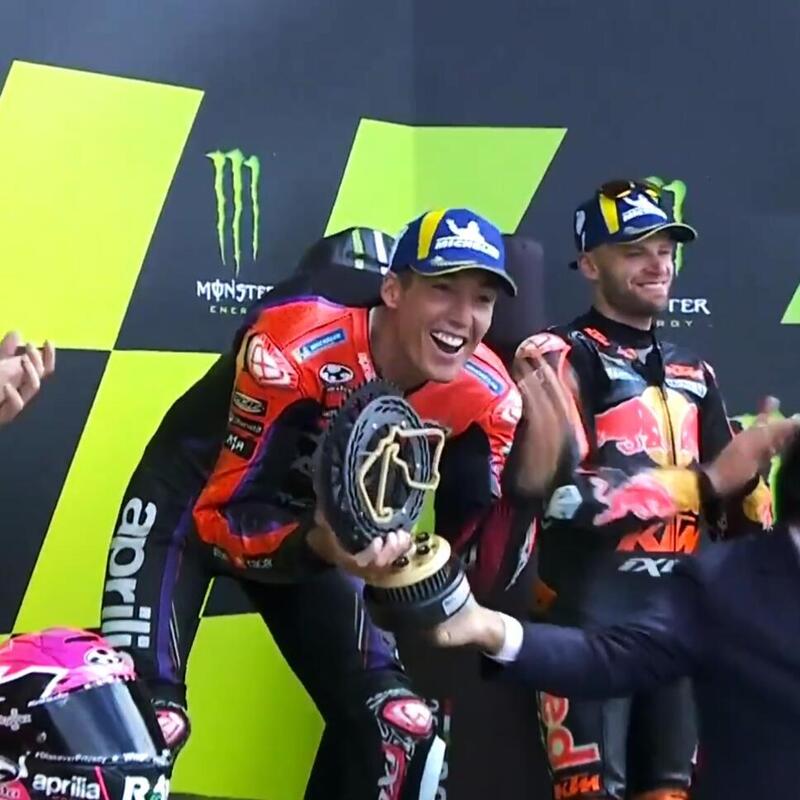 Silverstone - Una gioia diversa rispetto ad Argentina 2022: allora era stata incontenibile, perché la prima della carriera, la prima per l’Aprilia in MotoGP, dopo anni difficilissimi. Questa è più contenuta, meno esplosiva, più ragionata, ma comunque immensa.