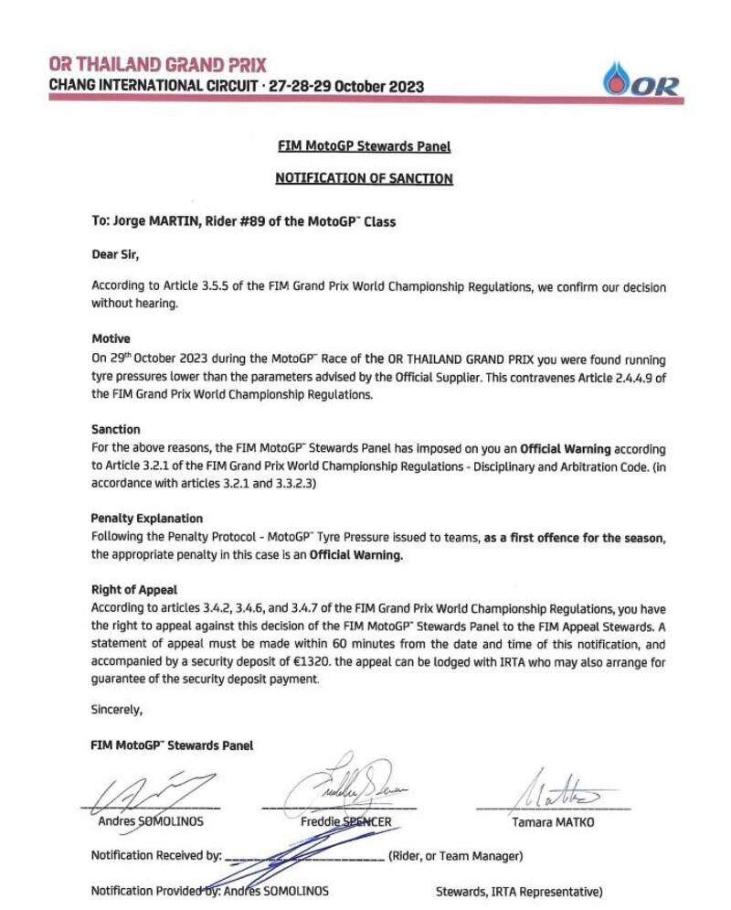 È un fatto da tenere in considerazione in ottica mondiale: Martin e Pramac dovranno stare attenti a non sforare nuovamente questi limiti.
