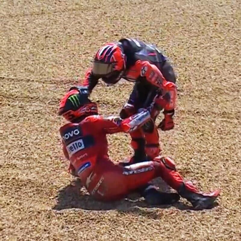 "L'adrenalina lì è a mille, non lo dico per Pecco, ma molti piloti si devono calmare un po', noi siamo l'esempio per la Moto3. Mi sono incazzato molto perché sentivo di poter andare a vincere, è stata dura accettare che siamo andati per terra, ma come ho detto prima sia io che Pecco siamo piloti abbastanza puliti"
