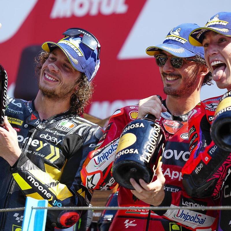 “Al di là del mio primo podio in MotoGP, qualcosa di straordinario, ho veramente tanti ricordi belli su questa pista. Venivo qui da piccolo assieme ai miei genitori e a mio cugino, venivamo a vedere Vale (ovviamente Valentino Rossi, NDA), io ero suo super tifoso, era già il mio eroe… Allora era fighissimo, non c’era nemmeno la barriera, a quattro metri c’era la pista vera. Sognavo tantissimo un giorno di essere lì: passare da seduto sul prato a essere in pista e riuscire a fare tre podi in due anni, mi rende molto contento. È molto bello”