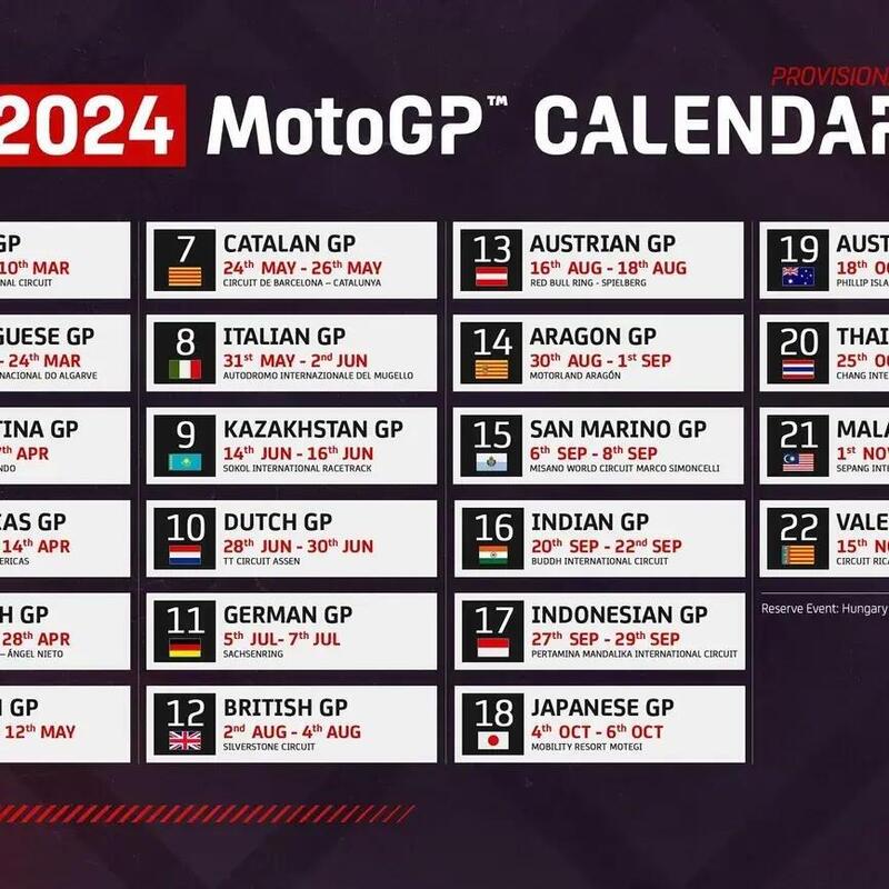 Quattro doppie, tre triple e otto mesi di gare. È il calendario MotoGP 2024, che è stato annunciato poche settimane fa. Saranno 22 i weekend di gara, due più di quest'anno.