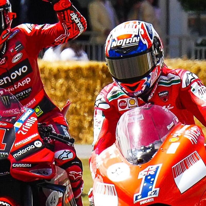 Stoner ha corso con Ducati dal 2007 al 2010, quattro anni, vincendo un mondiale e, appunto 23 gare (10 il primo anno poi 6, 4, 3). Bagnaia è al terzo anno in rosso: ha un mondiale vinto e 15 successi in GP (4, 7 e 4 fino a ora nel 2023).