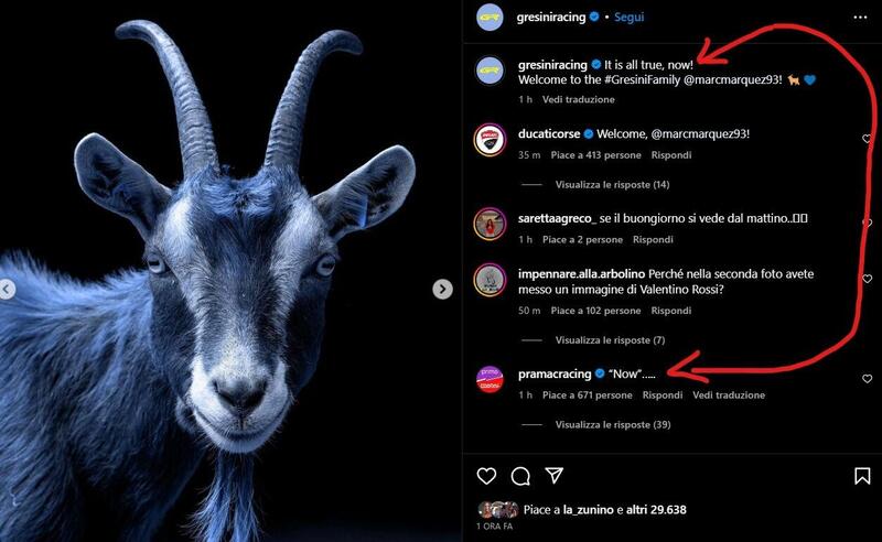 E subito c'è stata la reazione social del team Pramac, il secondo team Ducati, quello che ha moto ufficiali e che ha provato a prendere Marquez.