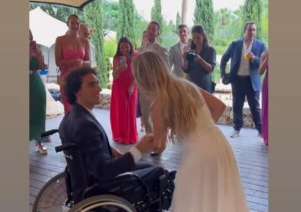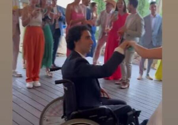 Il pilota classe 1995, come si vede dalle foto, è riuscito comunque a divertirsi e a ballare, seppur su una gamba sola. Certo, non il matrimonio che si aspettava, ma la festa c'è comunque stata.