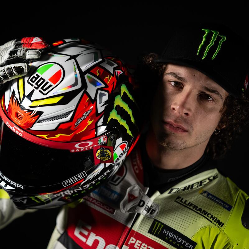 Dopo la presentazione a Riccione il Pertamina Enduro VR46 Team scende in pista e Bezzecchi lo fa con un casco dedicato, la livrea è unica!