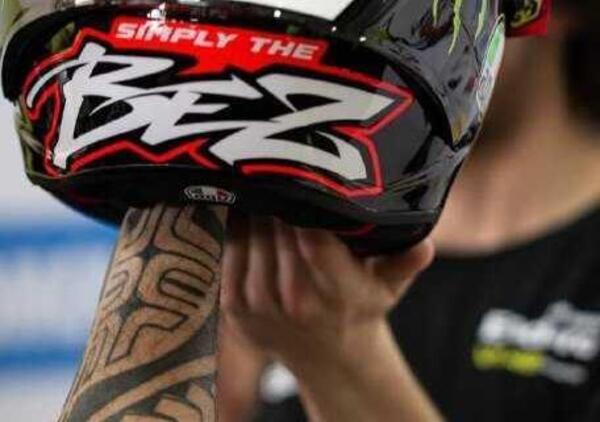 Da chi potevamo aspettarcelo se non dal Bez. Per questi test Marco indosserà un casco ispirato alla celebre canzone di Adriano Pappalardo "Ricominciamo" con un testo rivisitato in chiave motociclistica.