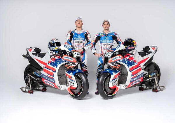 Il sogno americano è realtà! Le attese livree delle Aprilia Trackhouse sono state svelate. E sì, sono a stelle e strisce anche se un po’ diverse da quella che avevamo visto all’annuncio della nascita del nuovo team satellite Aprilia.
