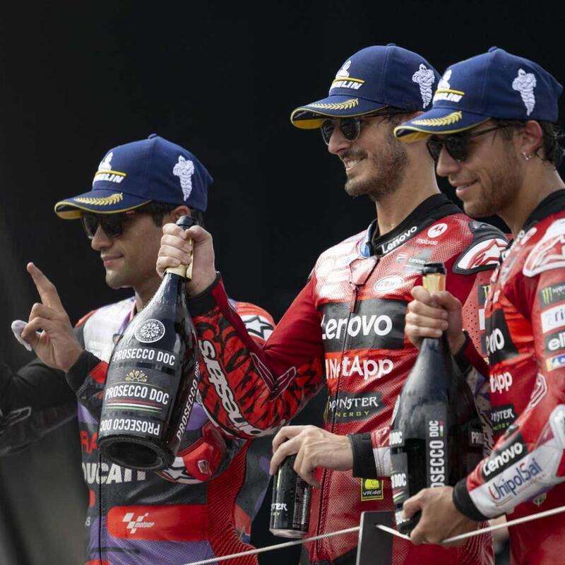 "Arriva da un momento incredibile, in questo weekend è subito partito forte, è andato subito bene dalle prime prove. Martin è lì ma lui riesce ad avere quel "pelettino" in più: sono d'accordo su tutto, è tranquillo, guida bene ed è incredibilmente veloce. È migliorato su tutti i punti e al momento non ha un punto debole perché il giro lo fa, sulla partenza parte sempre bene e questo è molto importante, è una cosa dei fuoriclasse come Verstappen: lui è sempre lì ed è incredibilmente veloce. Ultimamente sotto pressione sta dando il massimo, la forza di Bagnaia è questo: è aggressivo ma non è sporco, è pulito ma non è dolce, è il giusto mix tra la cattiveria, l'aggressività il guidare la Ducati in sovrasterzo in frenata, ma anche la percorrenza, non sbagliare. Ora è duro da battere, ma sono lì con Martin. Sono ancora a pari punti, ci sono molte possibilità che arrivino fino alla fine, poi dipende dalle dinamiche: ora arriviamo da una "dinamica Bagnaia", che ha recuperato un po' di punti, Martin aveva un vantaggio. Ora bisogna vedere da domani, tutti i weekend, sarà bello perché anche Martin è velocissimo, sbaglia poco, il giro veloce ce l'ha, parte bene: sono queste le cose importanti della MotoGP di adesso e sarà una bella lotta fino alla fine. Prima della pausa Pecco era in una condizione migliore perché lo ha raggiunto e superato, ma Martin, nonostante l'anno prossimo non sia più in Ducati e dovrà cambiare squadra ed è rimasto deluso perché voleva andare nella Rossa, era comunque lì e l'ha superato: ora sono 250 pari. Da fuori vanno un po' di più: si vede anche ad occhio nudo che hanno quel decimino in più nei punti cruciali della pista"
