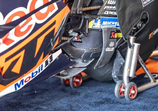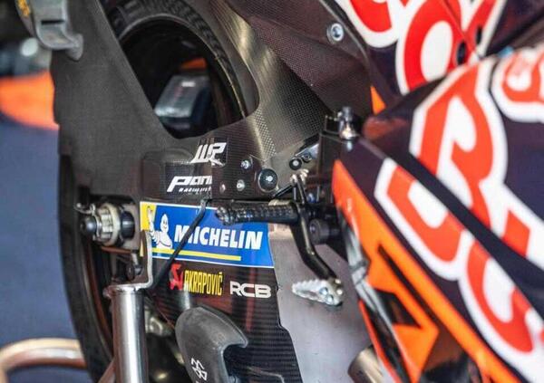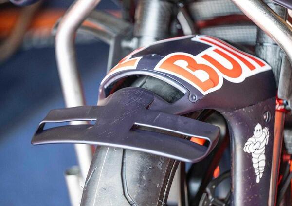 Al termine delle prime prove libere Espargaro è addirittura terzo. Una moto con appendici aerodinamiche sul forcellone ma anche in altre parti della moto.