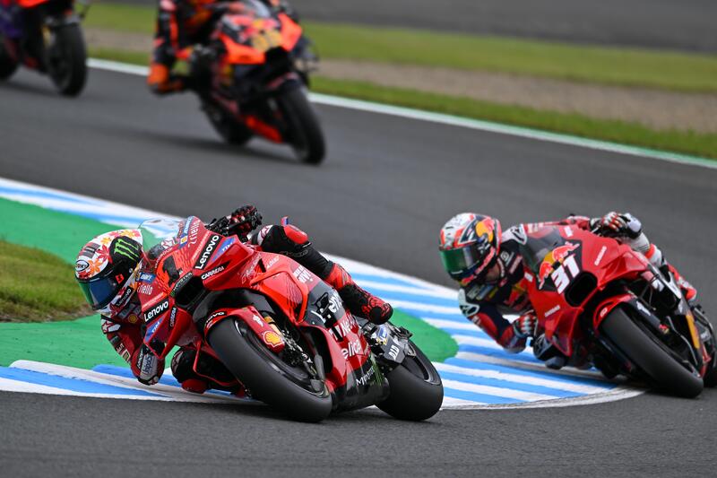 Gara di gestione, mentalmente impegnativa per Pecco Bagnaia che ha condotto il GP del Giappone dal primo fino all'ultimo giro, in fuga dagli inseguitori e sopratutto da uno Jorge Martin che scattava dalla undicesima casella. Al via Pecco sorprende Acosta e si piazza in testa per non abbandonarla per tutto il resto della gara, riuscendo a non cedere alle pressioni dello spagnolo e recuperando 11 punti: adesso il suo distacco da Martin nella classifica è ridotto a 10 punti, nulla se pensiamo alla costanza di Pecco, alla sua concentrazione e alle gare che verranno. Molti, se pensiamo che Jorge non cede di un millimetro, è più sereno e centrato, per sua stessa ammissione, rispetto a un anno fa. Sarà un'incredbile sfida.