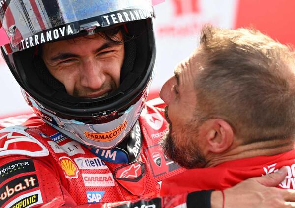 Enea Bastianini si prende di forza la vittoria del suo Gran Premio di casa, quello dell'Emilia Romagna. Con un sorpasso all'ultimo giro su Jorge Martin che ha fatto tanto discutere, l'italiano rende ancora più grande la festa italiana, amplificata dalla vittoria di Celestino Vietti in Moto2, e quella della Ducati, che nello stesso giorno della sua centesima vittoria in MotoGP vince anche il campionato Costruttori. Sul podio c'è anche Marc Marquez, che ammette che il suo risultato sia un po' figlio della caduta di Pecco Bagnaia.