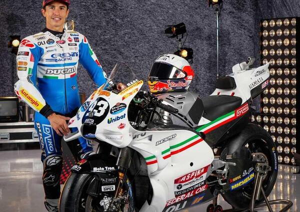 - Ducati: gli ufficiali del marchio di Borgo Panigale, Francesco Bagnaia ed Enea Bastianini, scenderanno in pista su una moto che richiama, nell’estetica, le Desmosedici GP3 guidate da Loris Capirossi e Troy Bayliss nel 2003, la stagione del debutto nella classe regina per il reparto corse emiliano.