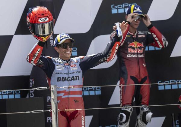 Aragon è azzurra color Gresini: Marc Marquez mette il sigillo su un weekend da favola, di cui è stato il solo dominatore. Secondo al traguardo un buon Jorge Martin che si è fatto trovare pronto e che torna leader del mondiale. Terzo Pedro Acosta a bordo della sua GasGas. Finisce tra la ghiaia e con molte polemiche la gara di Pecco Bagnaia, a causa di un contatto con Alex Marquez: per fortuna, entrambi i pilotti sono usciti illesi dal botto.