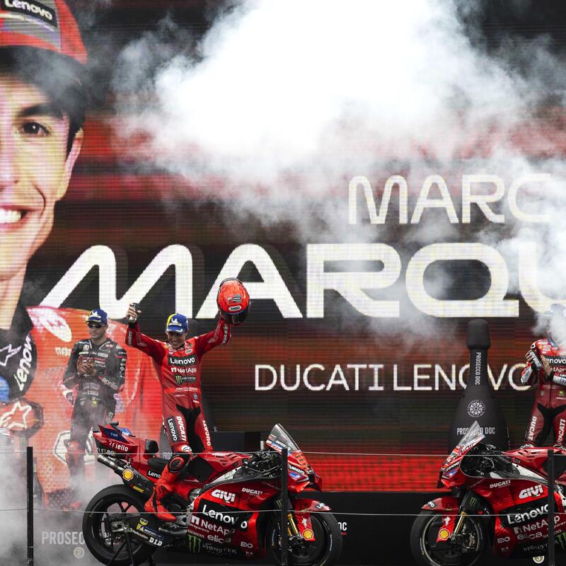 Pista fredda il venerdì con tante cadute e una gomma in comune: la media anteriore di Michelin. Migliori le condizioni la domenica, ma gare più lente dell’anno scorso: perché? La vittoria numero 94 di Marc (che raggiuge Ago in top class ) è stata davvero minacciata da Alex sabato e dal Bez la domenica? Insomma Marc poteva essere attaccato? E l’Aprilia: come nasce questo fine settimana meraviglioso (e vincerà il braccio di ferro con Martin)? E KTM ancora così avanti?