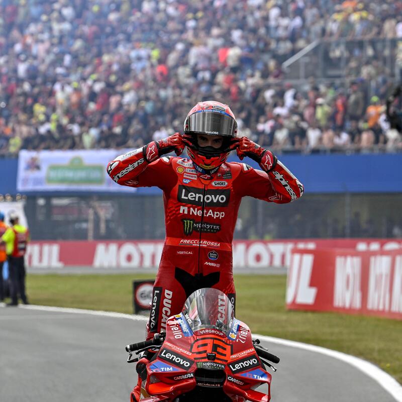Ad Assen Marc Marquez arrivava per "difendersi", "non aspettandosi la vittoria". E invece, anche per questo appuntamento di una stagione che sta dominando, il numero 93 è riuscito a ripetersi sabato e domenica: gli è sfuggita la pole, assegnata a Fabio Quartararo. Sul podio della Sprint sono saliti con lo spagnolo suo fratello Alex, infortunatosi domenica nella gara lunga, e Marco Bezzecchi. Domenica invece, si è ripetutio Bezzecchi, mentre il terzo posto è stato occupato da Pecco Bagnaia.