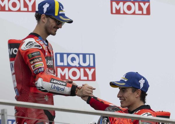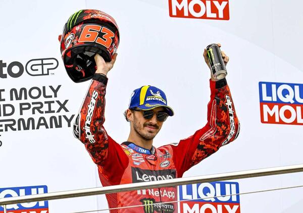 Marc Marquez è il Sachsenking: il numero 93 domina il weekend tedesco in lungo e in largo. Il sabato è stata sua la pole position e la vittoria nella Sprint: nel parco chiuso l'hanno accompagnato Johann Zarco e Marco Bezzecchi, mentre sul podio della Sprint sono saliti insieme a lui sempre il pilota Aprilia e Fabio Quartararo. La domenica Marquez si è confermato, secondo suo fratello Alex, terzo Pecco Bagnaia.