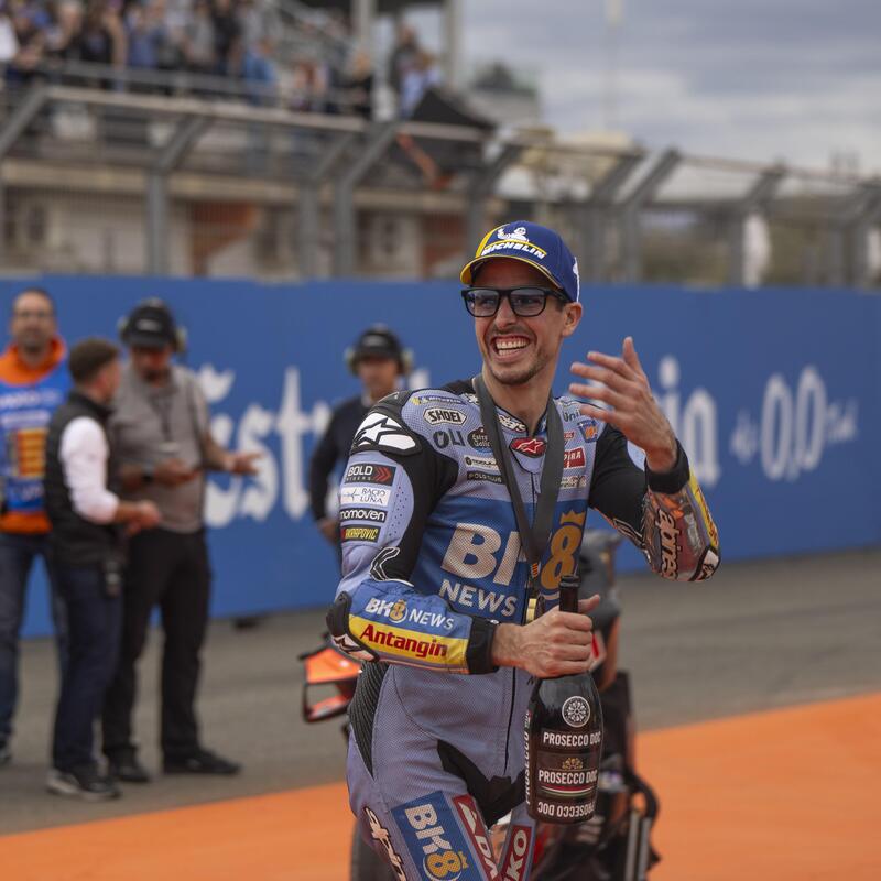 "Qui oltre che la pista stretta è che andiamo tutti praticamente uguali, quindi come parti più o meno arrivi. Al di fuori magari che all'inizio c'è qualcuno che può fare un po' più differenza. se sei davanti o se sei dietro magari così, però andiamo molto simili. Poi è difficile sorpassare, infatti io ho passato solo Quartararo e quando sono andato a prendere Di Giannantonio e Raul non avevo più tempo per provare a passare almeno Raul"